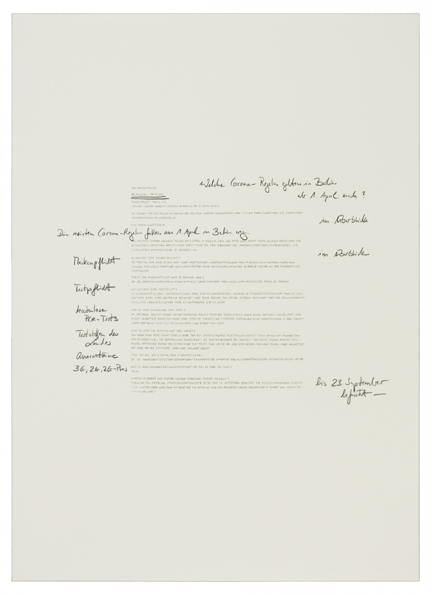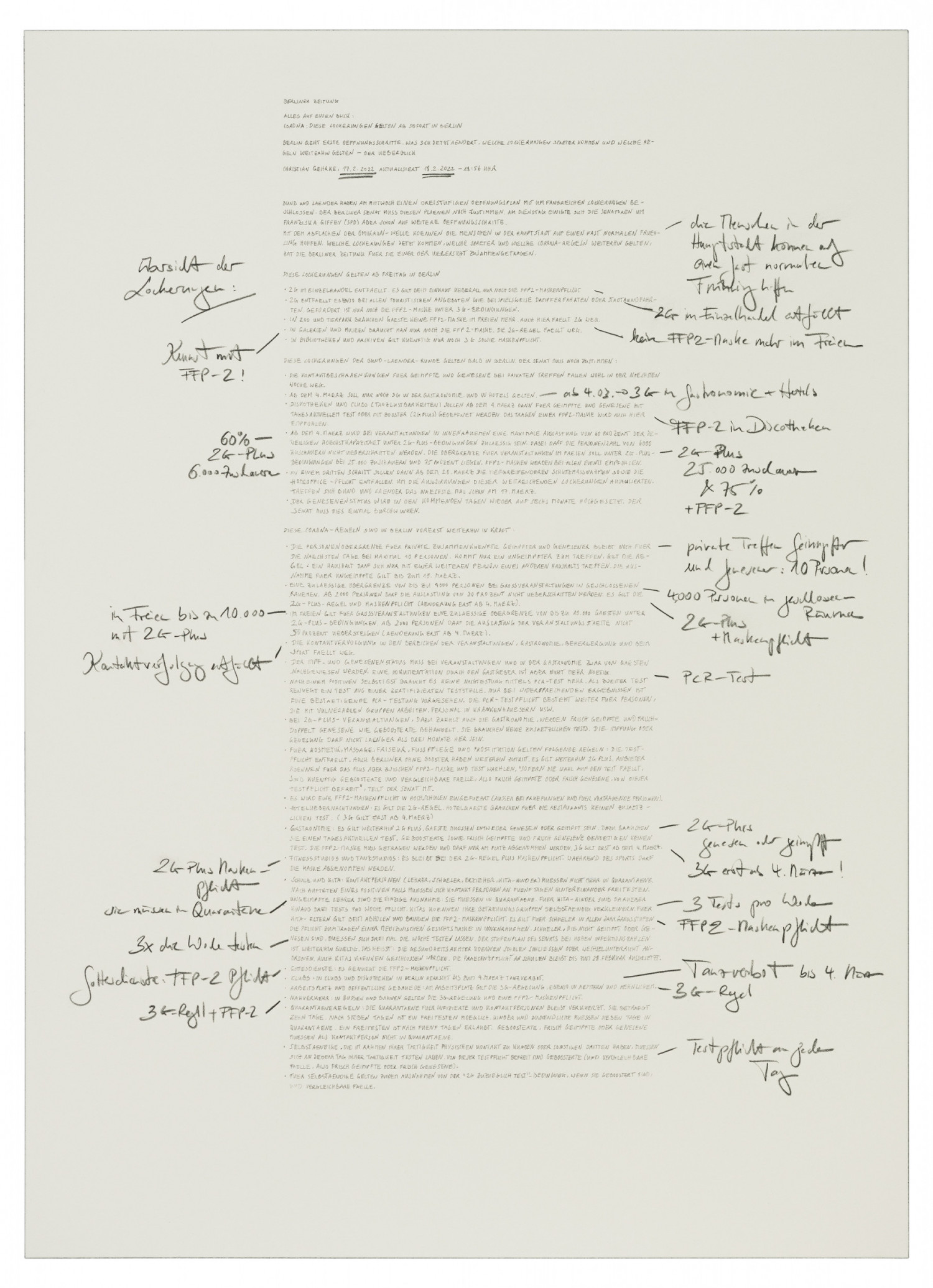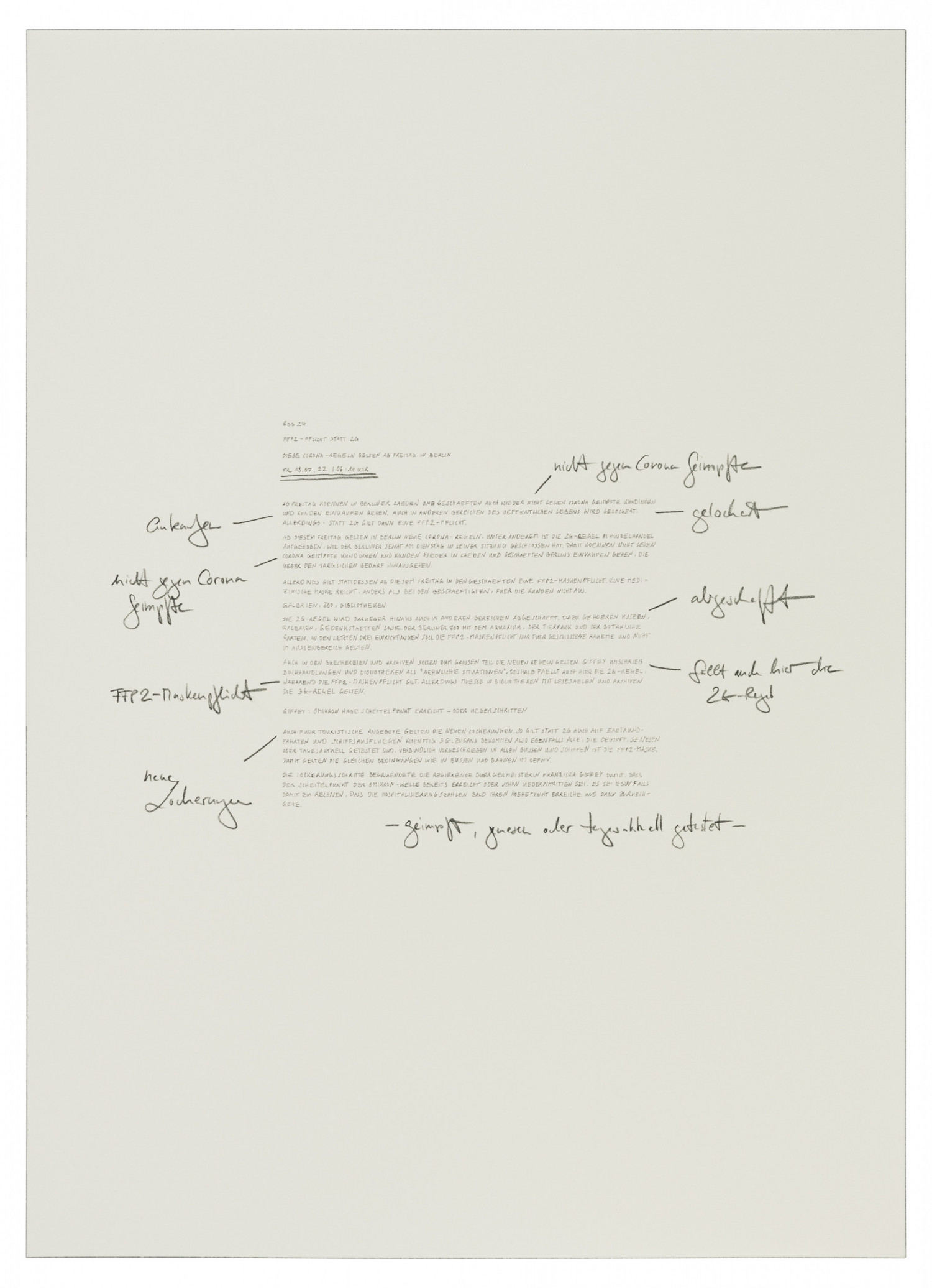 Während der Jahre 2021 und 2022, in denen die Pandemie- bezogenen Restriktionen in Deutschland stark zunahmen, habe ich mich in meiner Arbeit auf diese bezogen und mich mit ihnen auseinandergesetzt.