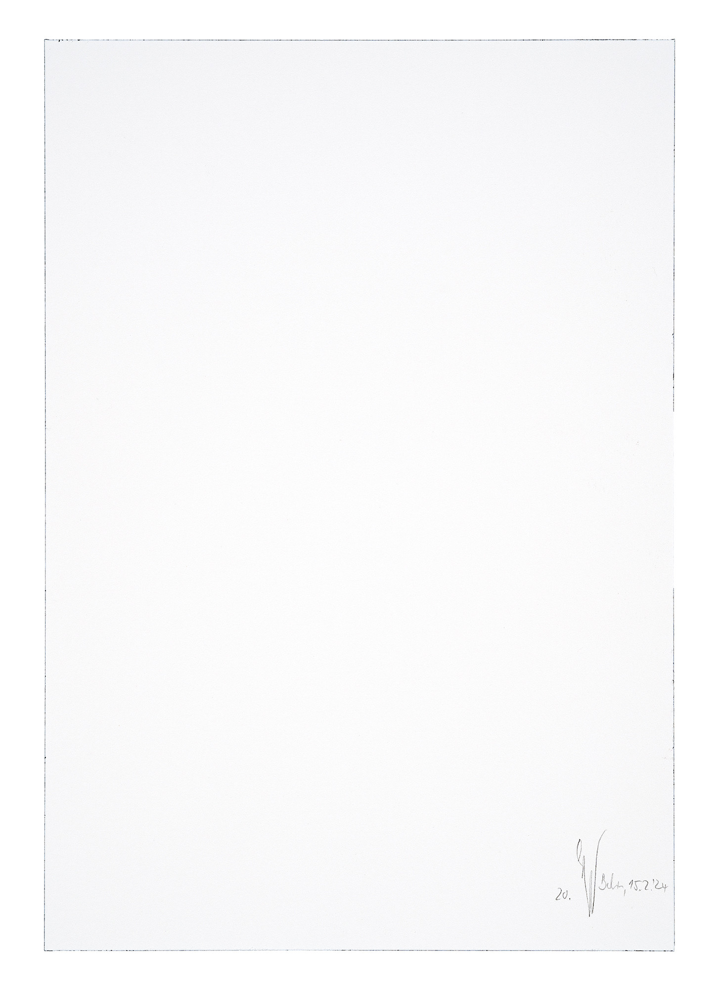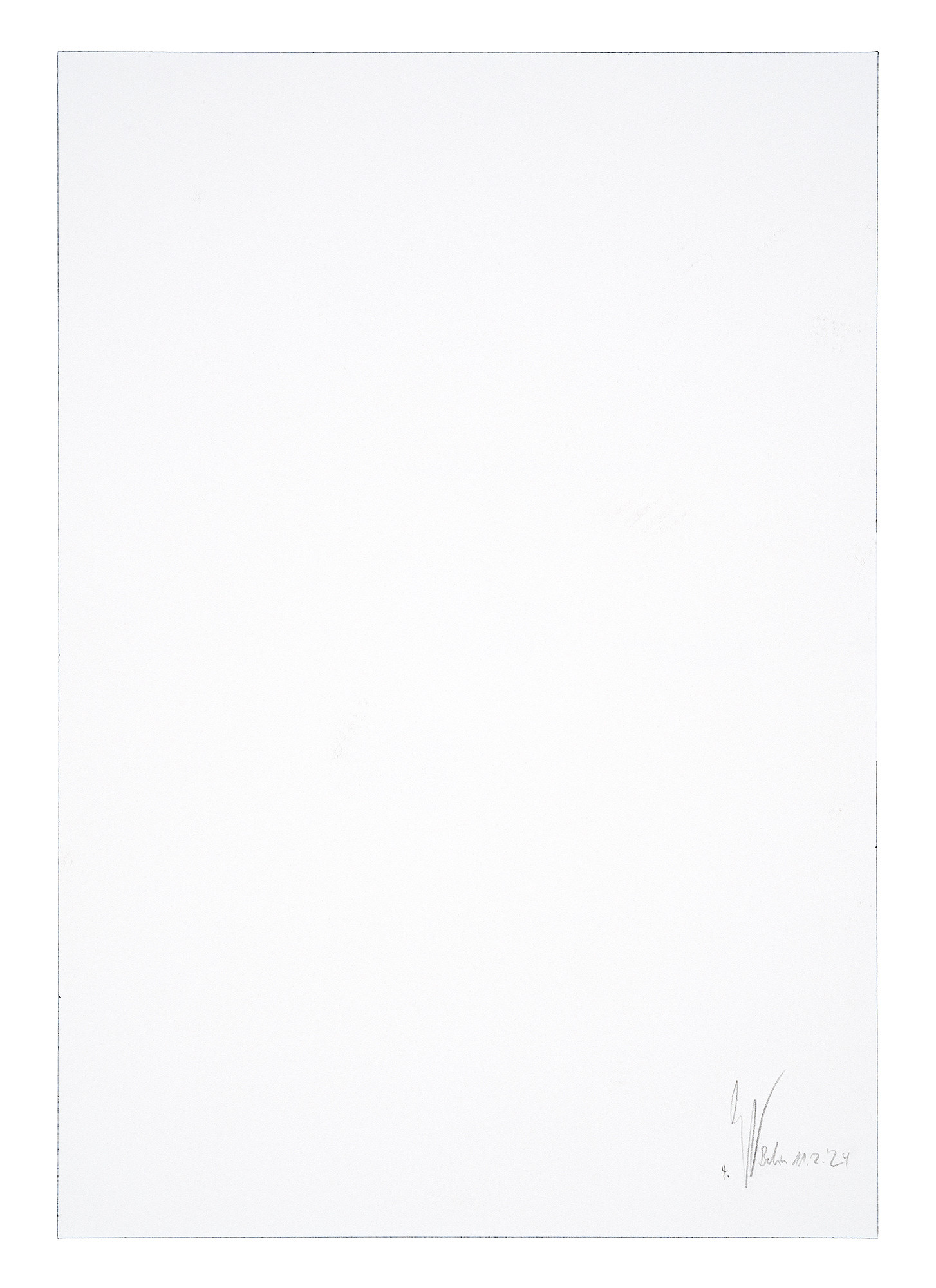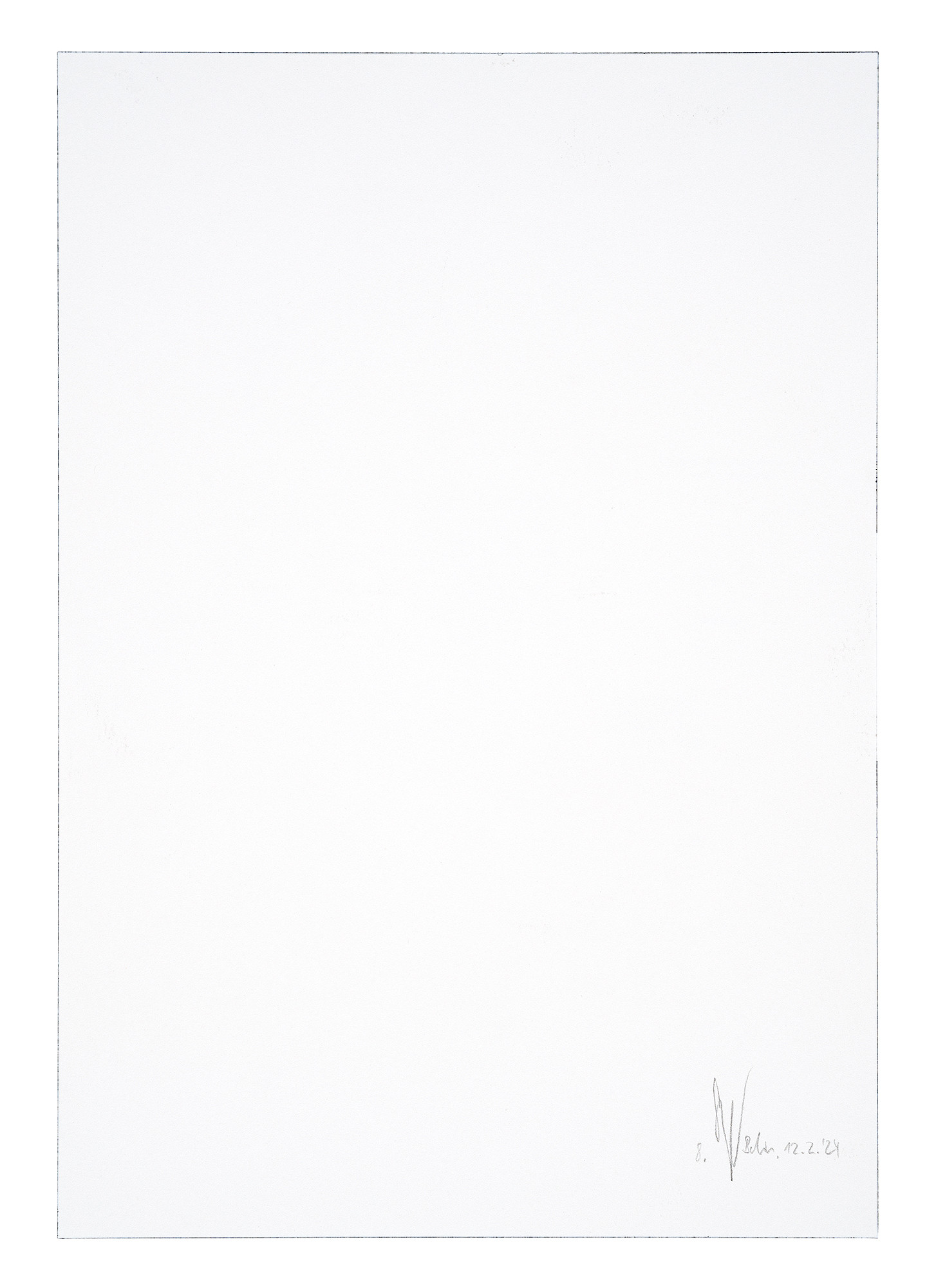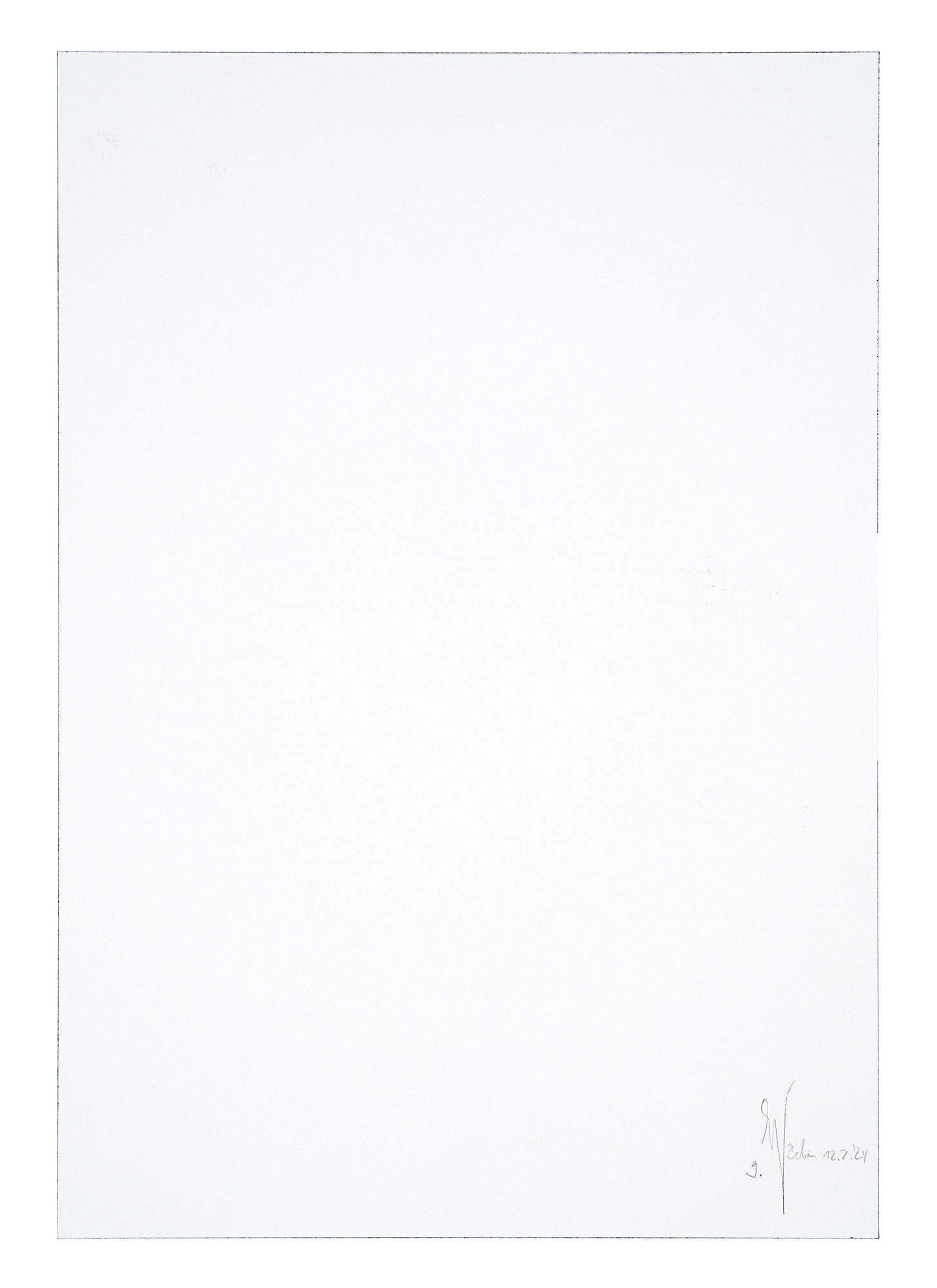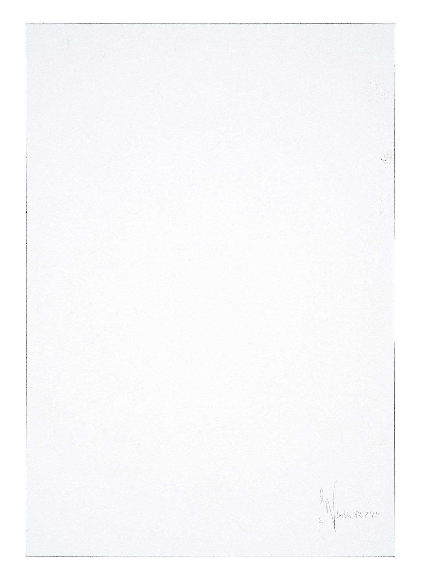 This work is an homage to the wonders and sorrows of interpersonal encounters. Again, different scales and styles of writing flow into one another, symbolising, among other things, the two characters in the story. Based on a communication between two people, which is written in fragments in 0,039 inch high, fine ink lettering in the centre of the sheet, their story as lovers is told over the course of the series. Further quotations surround this text, written in pencil. The man’s quotes are in block letters, the woman’s in cursive. Some of them are linked together. For the most part, the man’s texts are crossed out, which adds a profundity to the work. Injury versus self-injury, emotional autonomy versus devotion.
