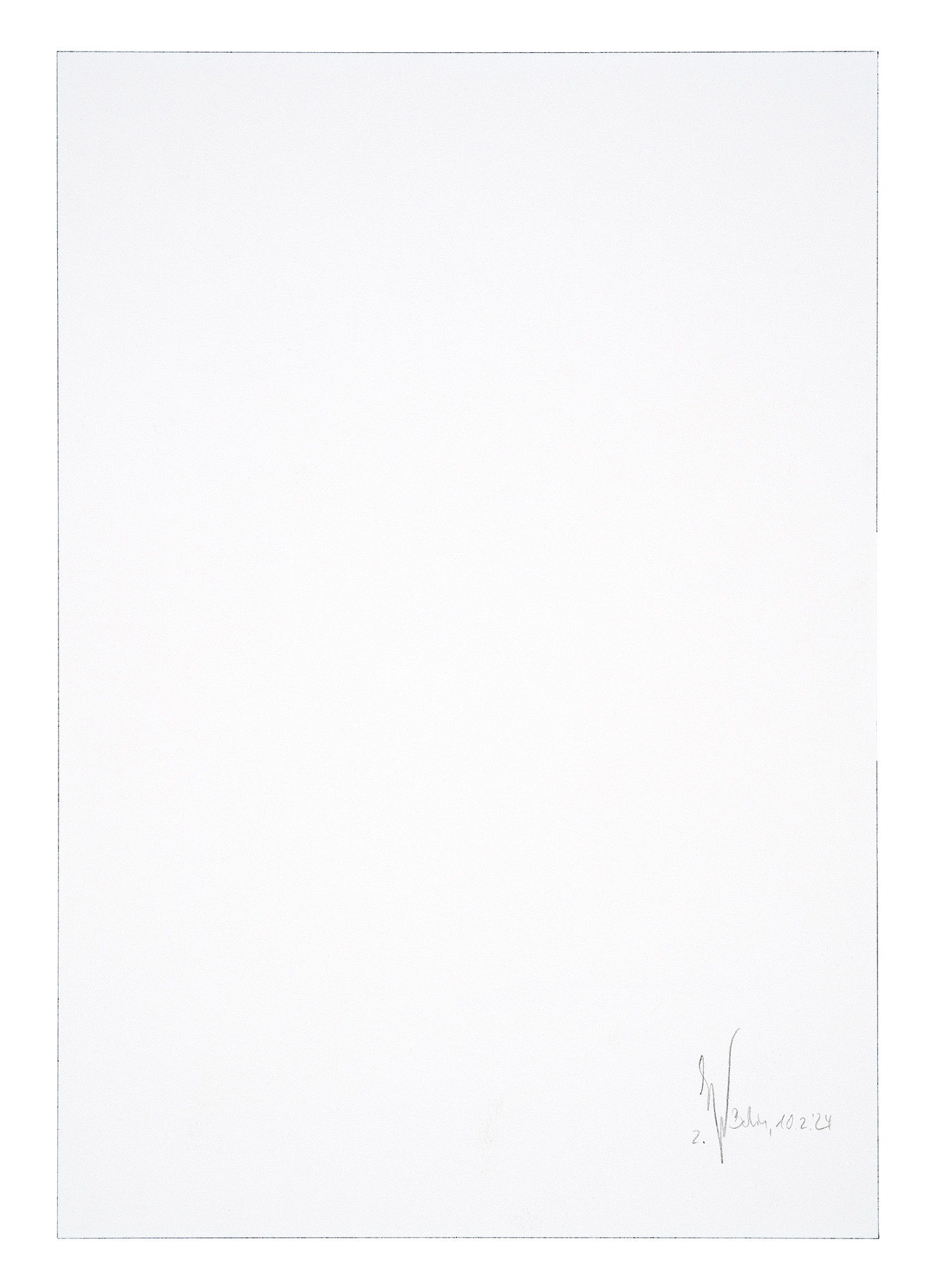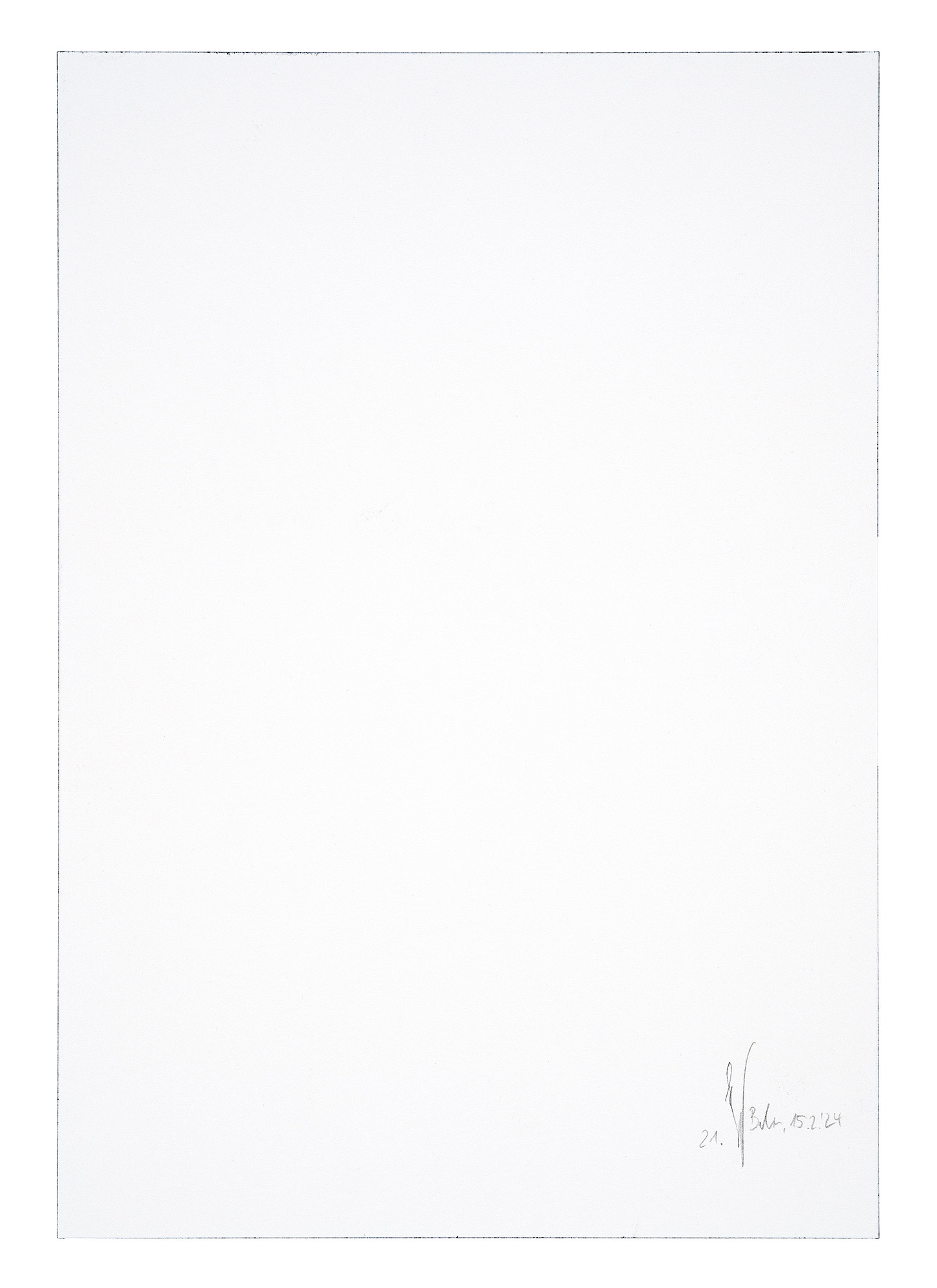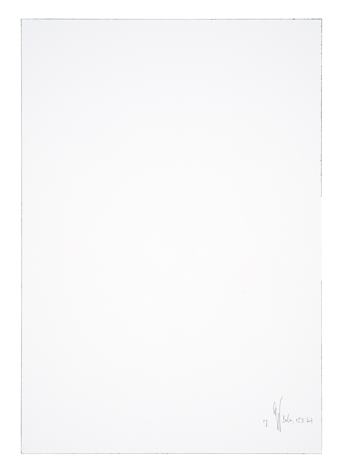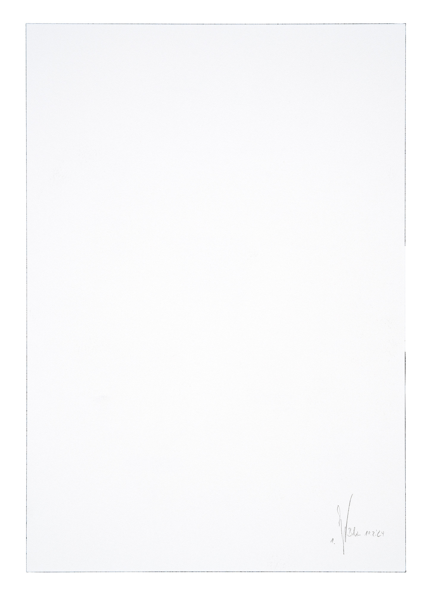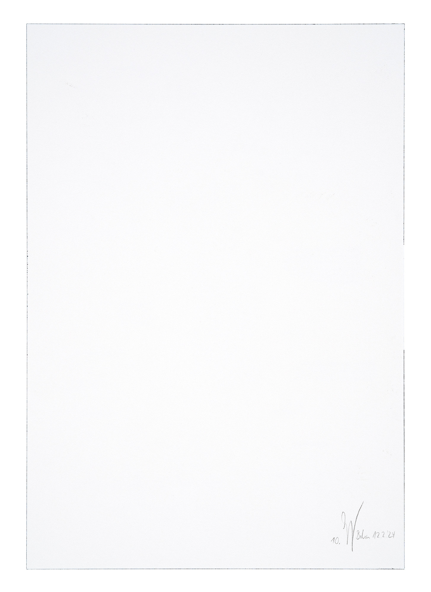 This work is an homage to the wonders and sorrows of interpersonal encounters. Again, different scales and styles of writing flow into one another, symbolising, among other things, the two characters in the story. Based on a communication between two people, which is written in fragments in 0,039 inch high, fine ink lettering in the centre of the sheet, their story as lovers is told over the course of the series. Further quotations surround this text, written in pencil. The man’s quotes are in block letters, the woman’s in cursive. Some of them are linked together. For the most part, the man’s texts are crossed out, which adds a profundity to the work. Injury versus self-injury, emotional autonomy versus devotion.