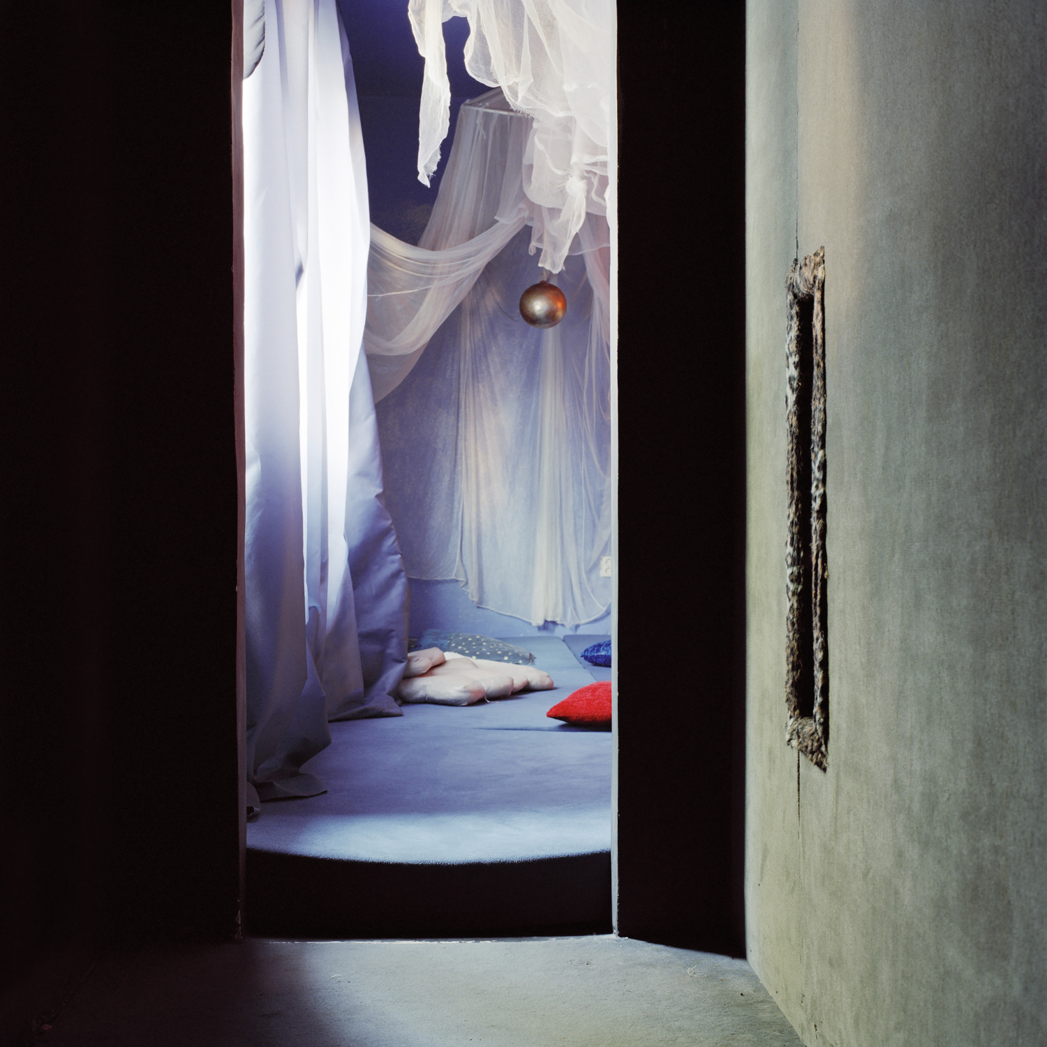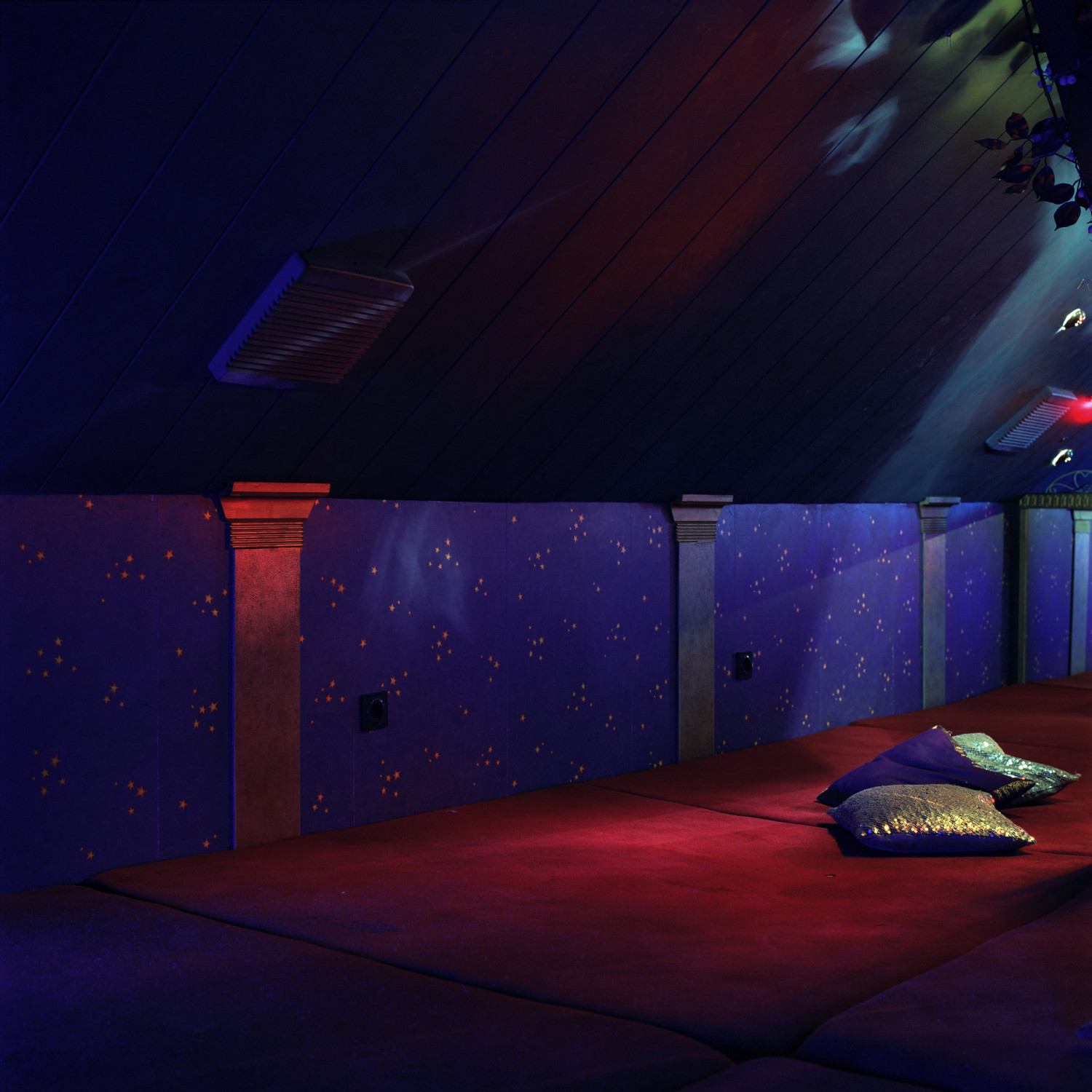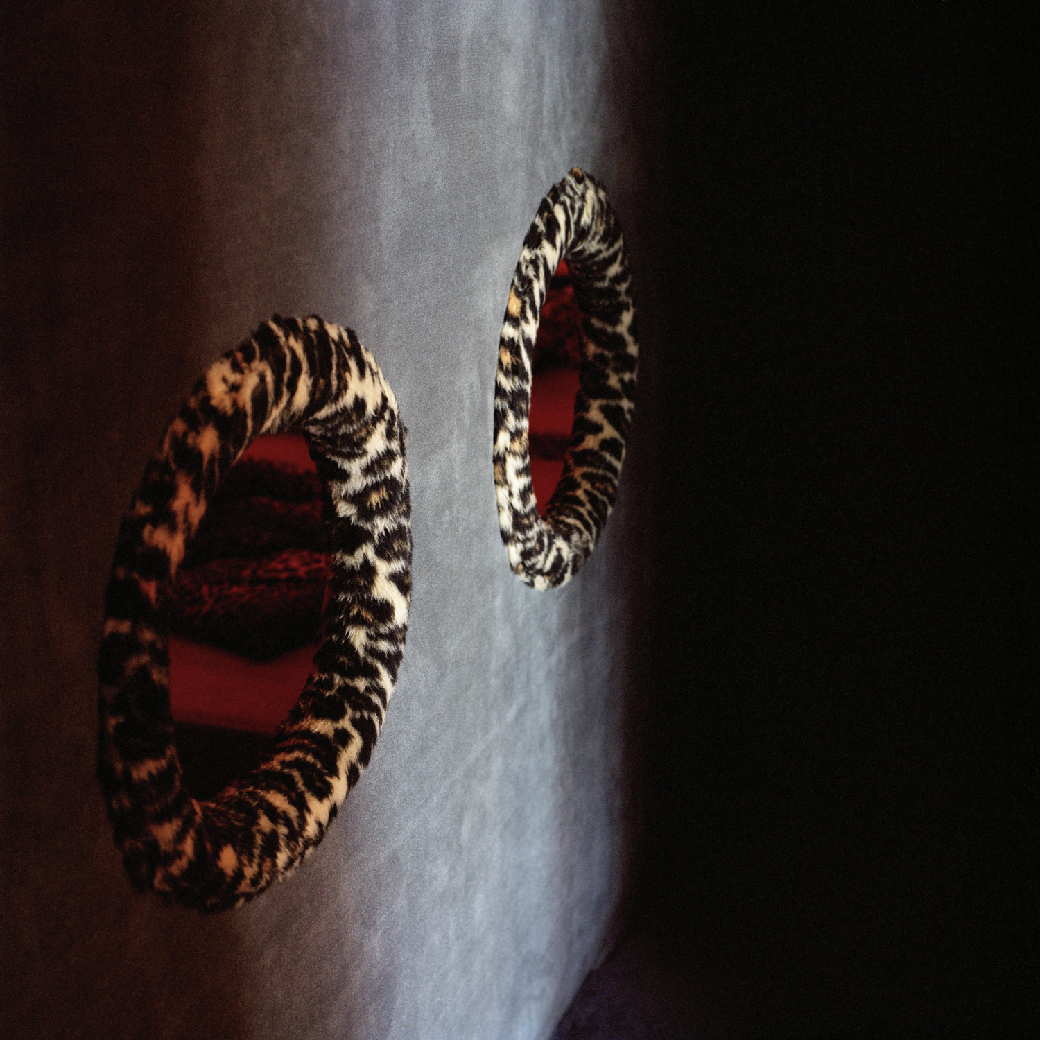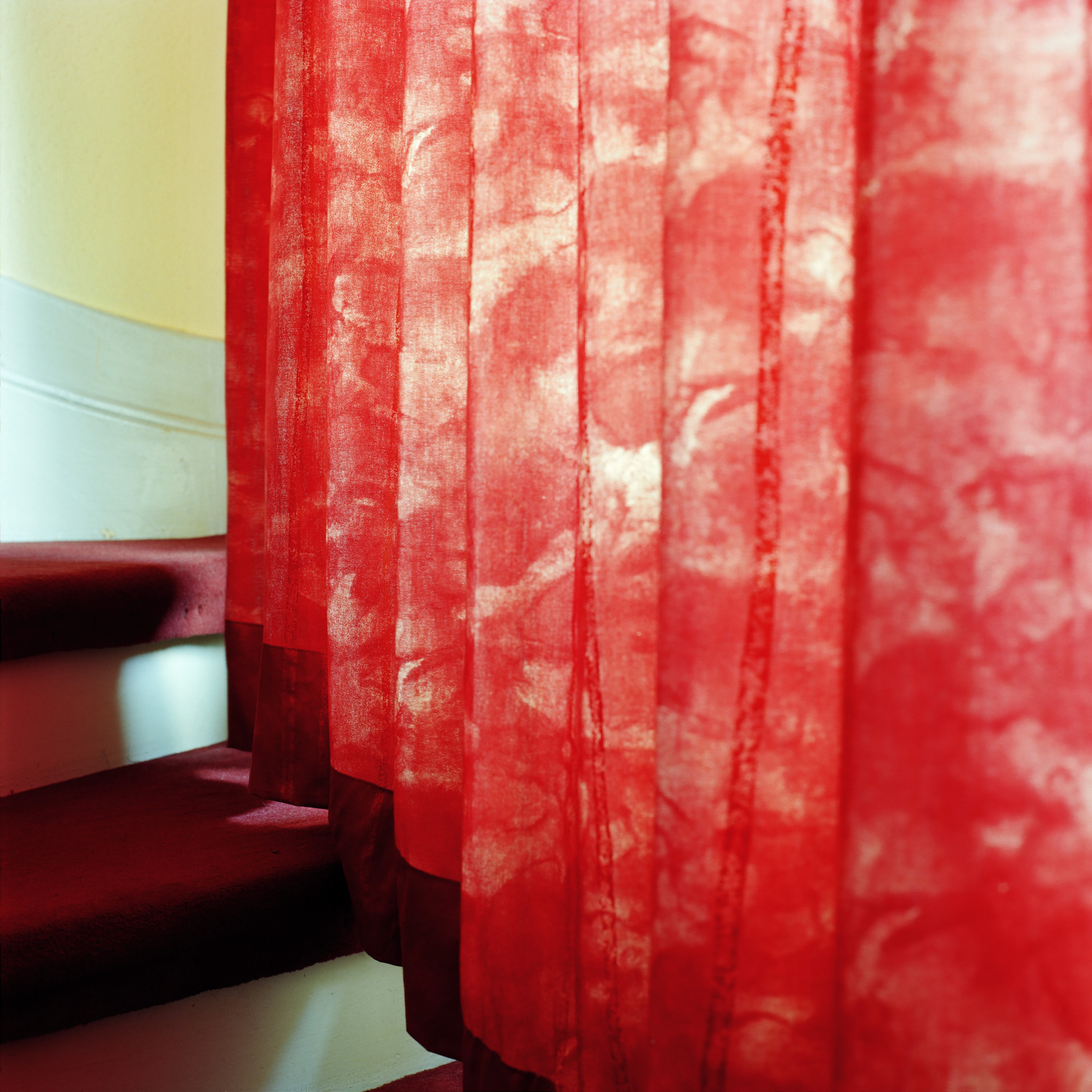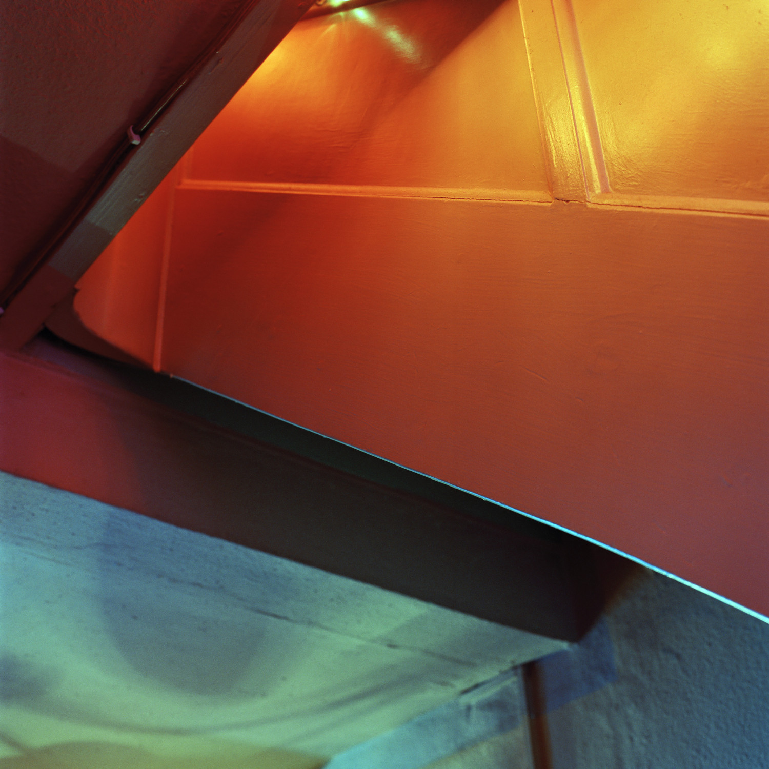 Die fotografierten Paare scheinen aus den Räumlichkeiten herausgelöst; die farbigen Ortsaufnahmen definieren diese Grauzone.